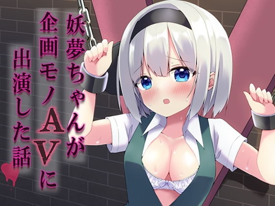 妖夢ちゃんがAV女優として撮影される事になった体験記です。 1睡眠薬入り(という設定)の水を飲まされて寝ている間にいたずらされるシーン、 2拘束されて電マとバイブでイカされまくるシーンを収録しています。感じてる演技をすればいいだけの所ですが妖夢ちゃんはやたら迫真の演技(?)で頑張っているようです。