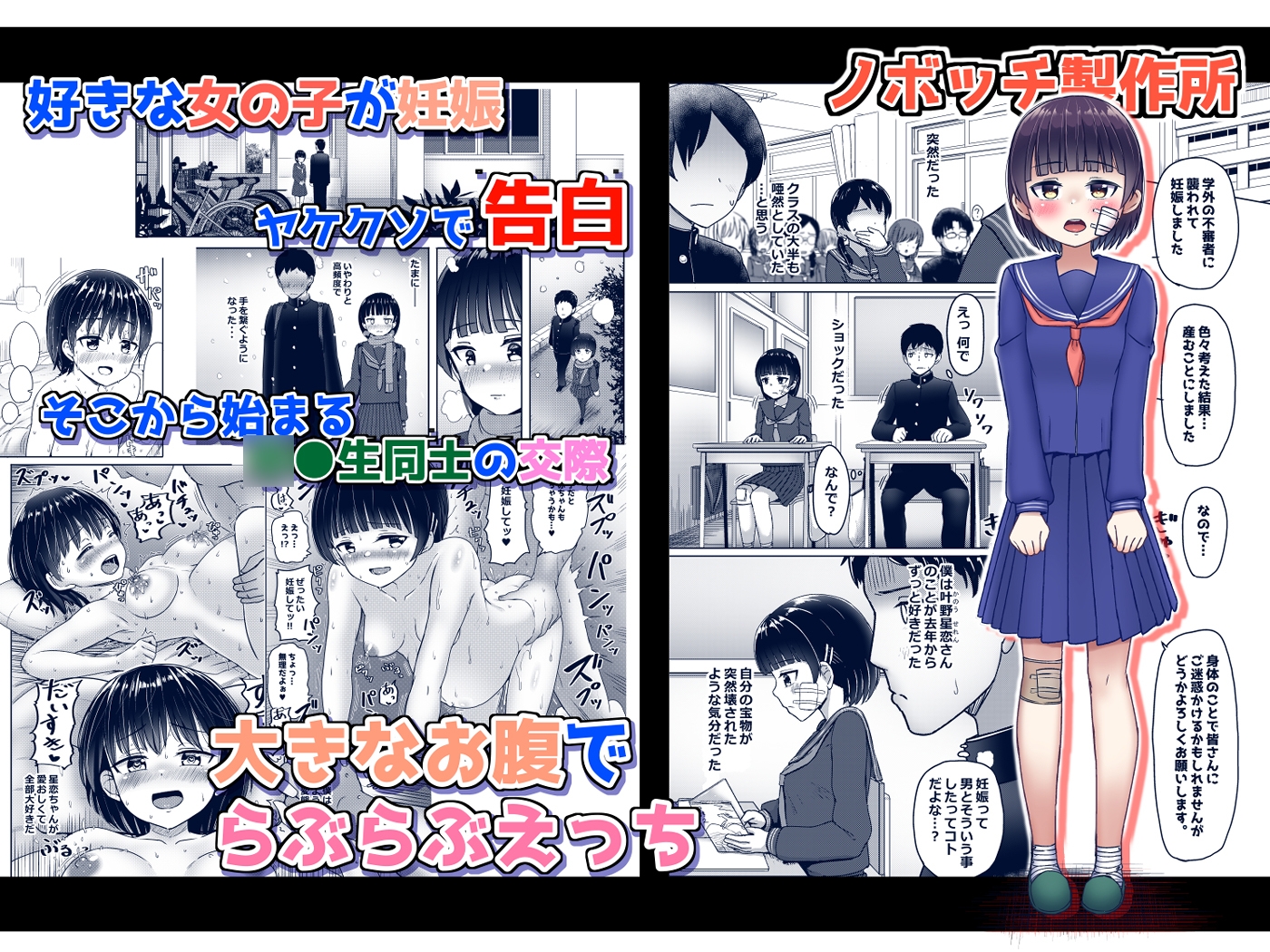 | ジャンル | 同級生/同僚 つるぺた BSS 出産 中出し 妊娠/孕ませ 母乳 ぼて腹/妊婦 |