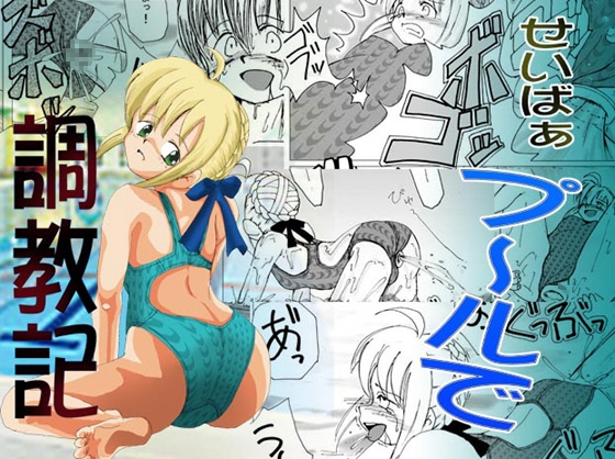 セイバーの肛門にリングを挿入しプールに放り込むシロウ