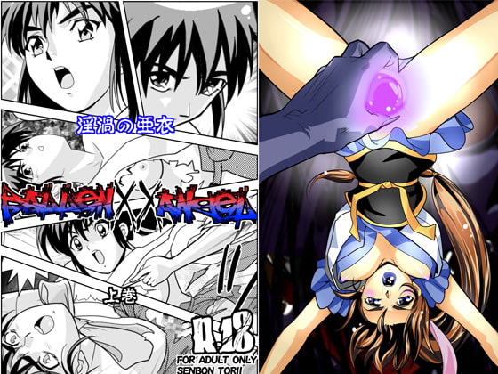 淫らの気を放つ黒玉を三穴にくわえこまされ全身を嬲られる天神羽衣天女亜○に果たして逆転のチャンスは!?淫○聖戦、麻○陵○本シリーズ二作目、同人誌32頁。
