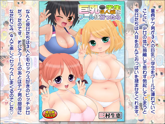 童貞デブ男が、人に頼まれて3人の巨乳○学生たちをプールに連れて行くことに。実は巨乳○学生たちは3人とも非処女でセックス好きのドスケベ少女で、プールで遊んだあと男の部屋に行き4人で楽しくセックスしまくるのだった。